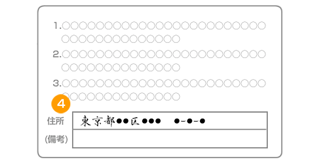 - 現住所以外に本籍地が記載されている場合は、本籍地を塗りつぶしてください。(住所欄が「同上」の場合は除く)