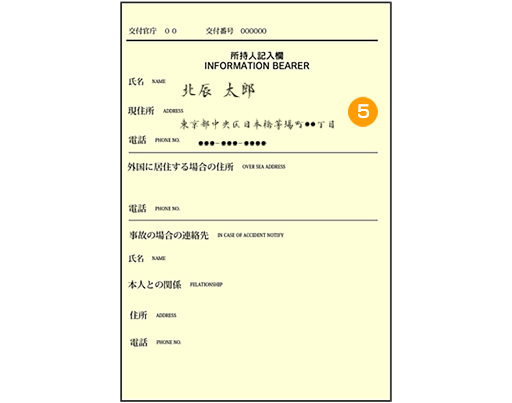 - 事故の場合の連絡先情報は塗りつぶしてください。