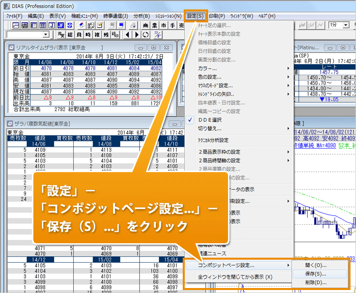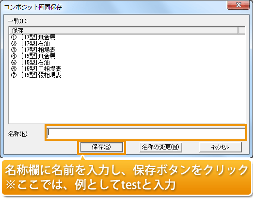 画面構成が保存されます。記録した画面構成を表示させる場合はこちら