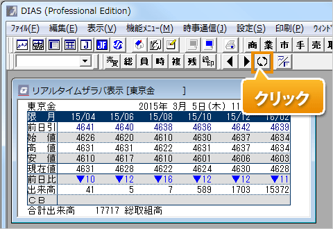 あらかじめ相場表もしくはチャートを表示した状態で、下図の操作を行います。