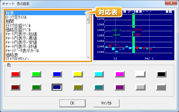 | 出来高 ※塗 | テクニカル塗り色 背景色 | |