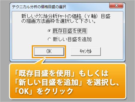上図はSTEP 4にて「既存目盛を使用」を選択した場合の表示例です。