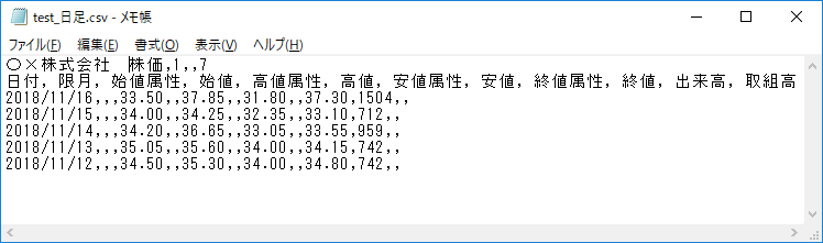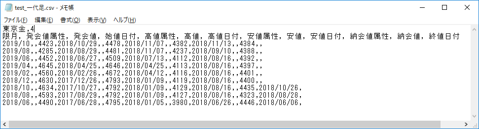 ・データ数が多い場合は、直近分を優先します。 - 価格(四本値)の小数点以下桁数は、最大のものに合わせます。
