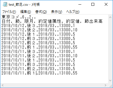 | 節足 | 6 | 日付,節,限月,約定値属性,約定値,節出来高 |