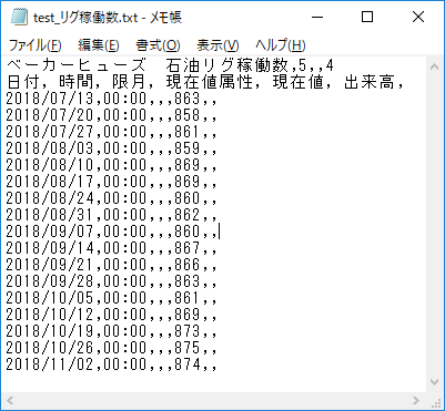 - リグ稼働数に本来限月はありませんが、データ取り込みの為に便宜上、データ種別に当限(4)を入力しています。また、時間についても便宜上「00:00」と入力しています。