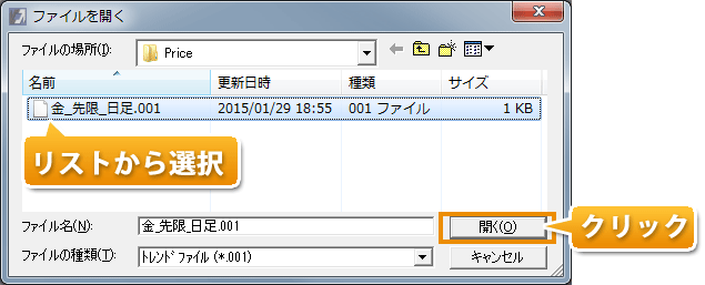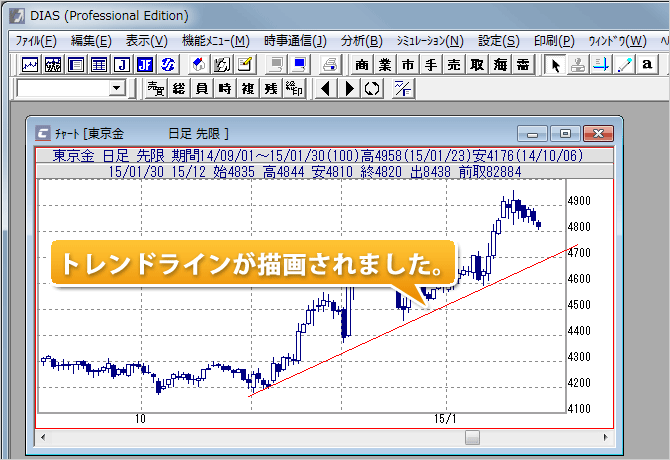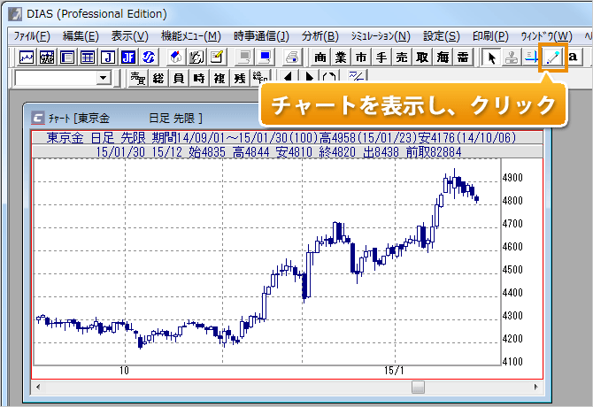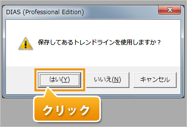 - チャートを表示後、メニュー「設定」-「マウスモード設定」-「チャート・トレンドラインモード」でも可。