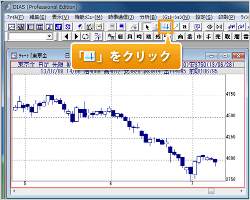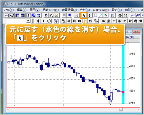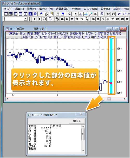 メニュー「設定」-「マウスモード設定」-「チャート・データ表示」でも可。