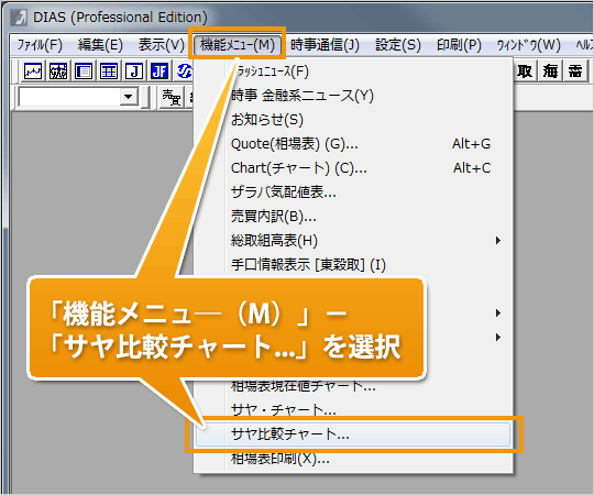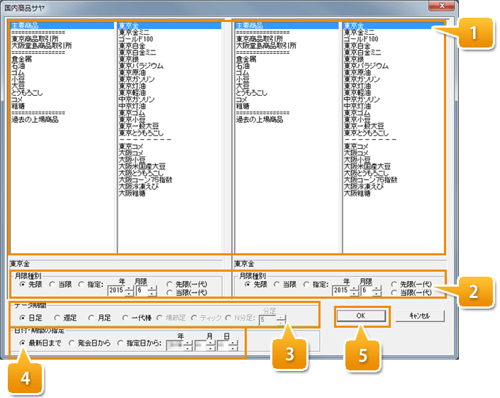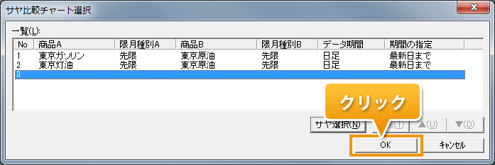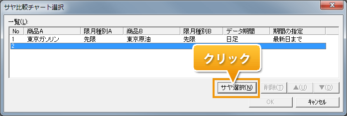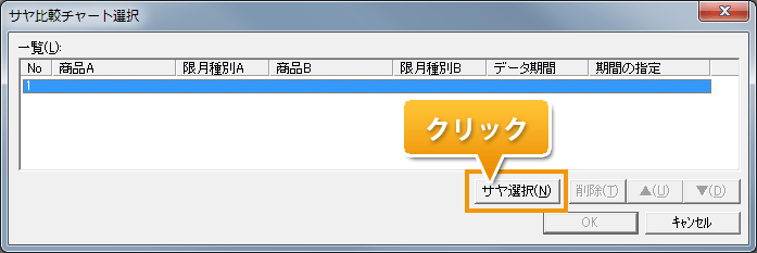 さらに、サヤチャートを追加したい場合、「サヤ選択(N)」をクリックし、銘柄を追加する事が可能です。