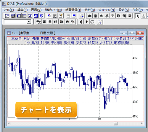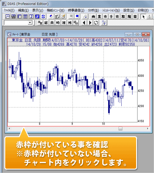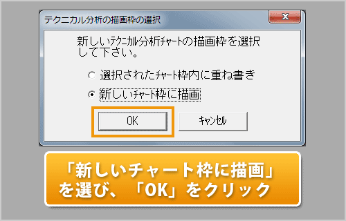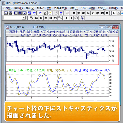 チャート表示されている枠の下に別枠としてストキャスティクス等を表示します。