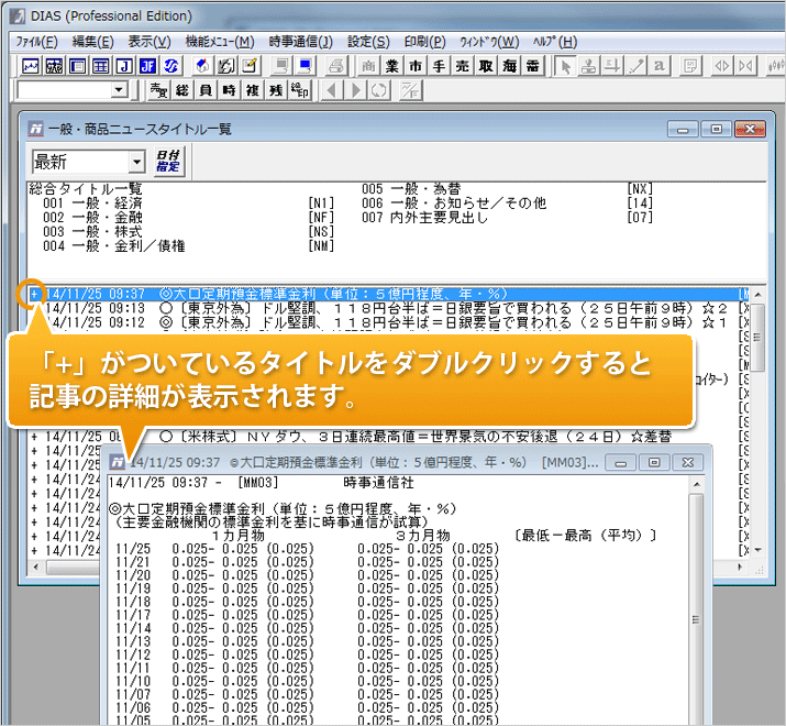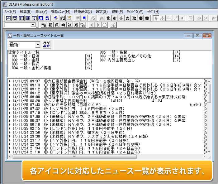 | 「一般・商品ニュースタイトル一覧」が表示されます。 | |