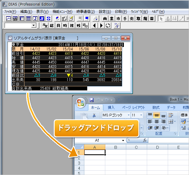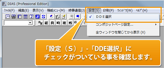 DDE機能をご利用の際には必ずDIAS(Pro)にログインし、Excelを起動してご利用ください。