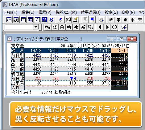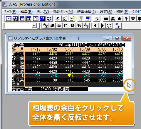 相場表の黒く反転した状態を解除する場合、相場表内で右クリックしてください。