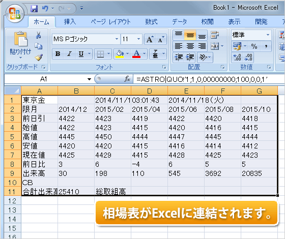 相場表とExcelを連結させ、Excel側で独自の集計をする事が可能です。