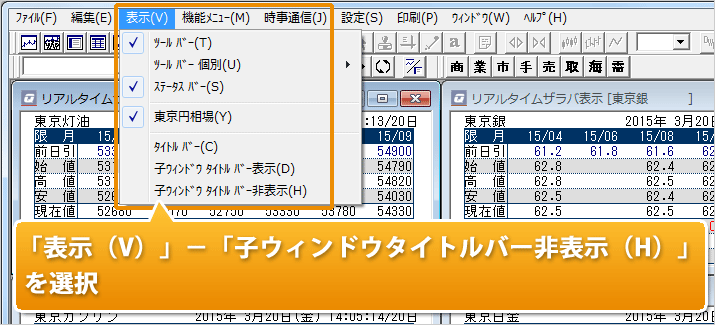 再度、メニュー「表示(V)」-「子ウィンドウタイトルバー(H)」をクリックすると、子タイトルバーが表示されます。