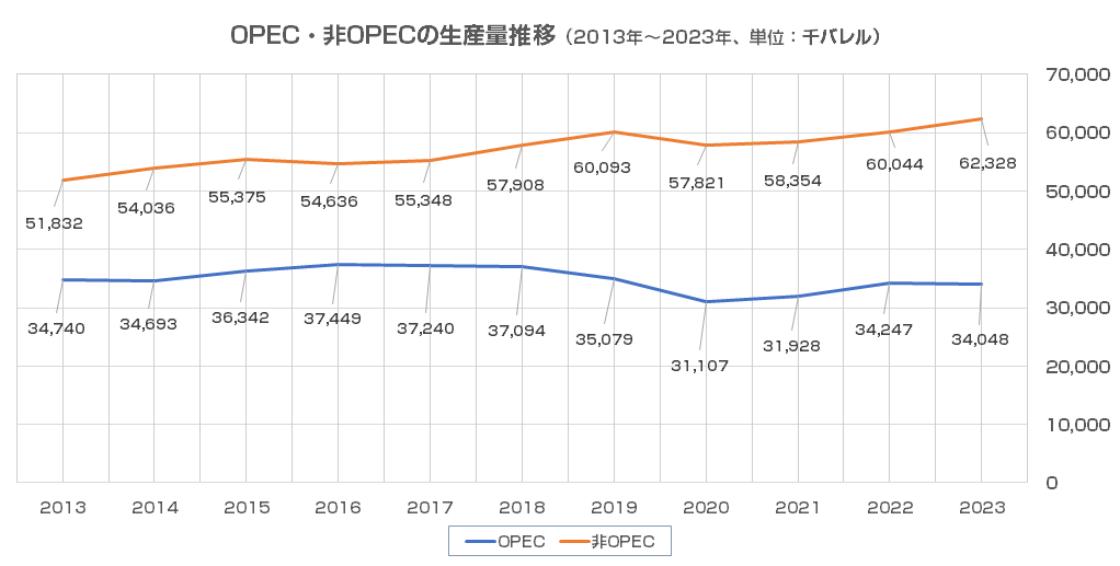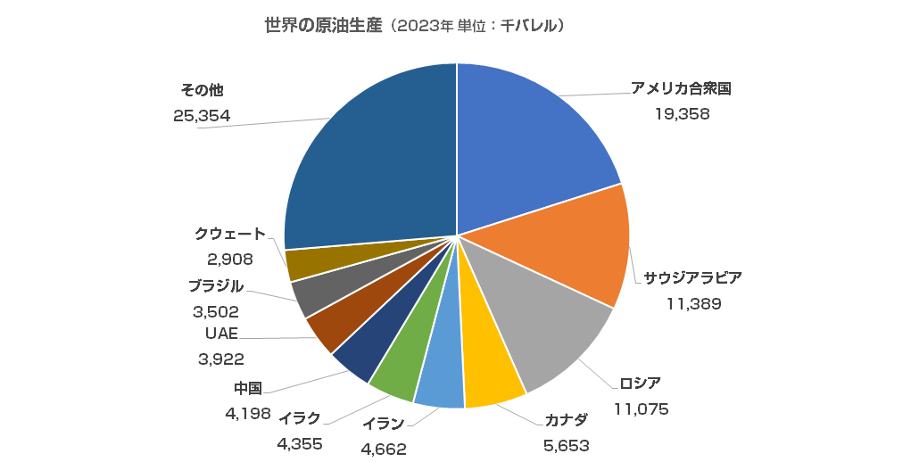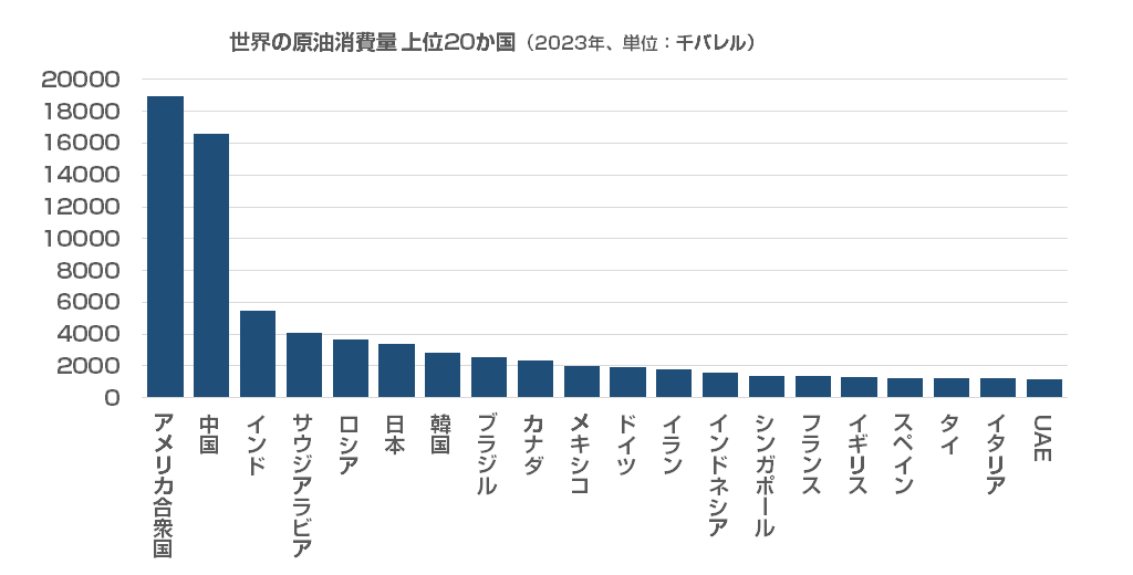 主要6カ国の原油消費量推移 2013年~2023年(単位:千バレル)