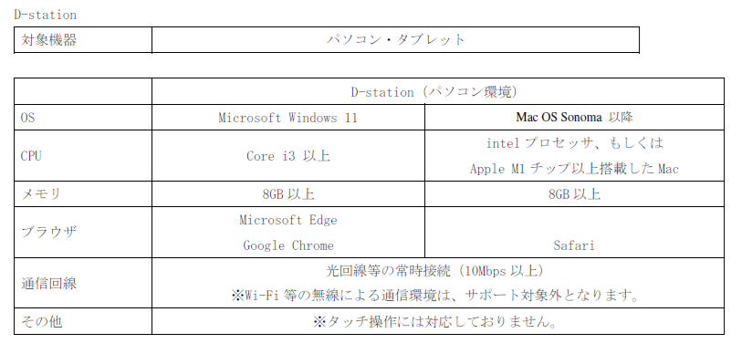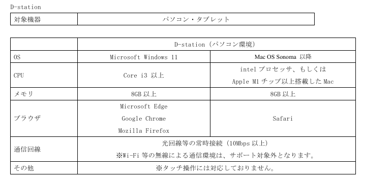 「D-station」、「D-touch」を初めてご利用の場合は、こちらをご参照ください。