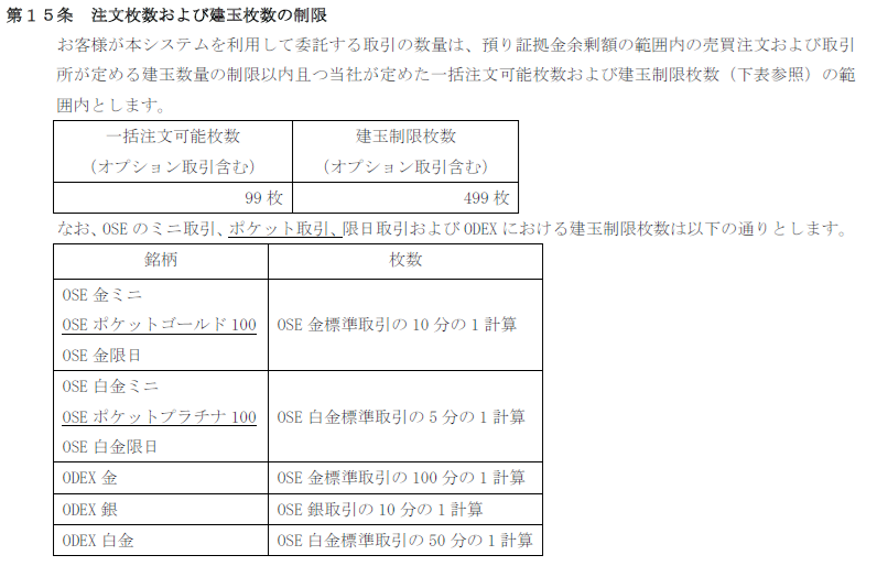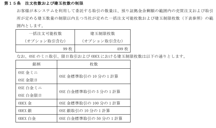 - ・ 第15条 注文枚数および建玉枚数の制限