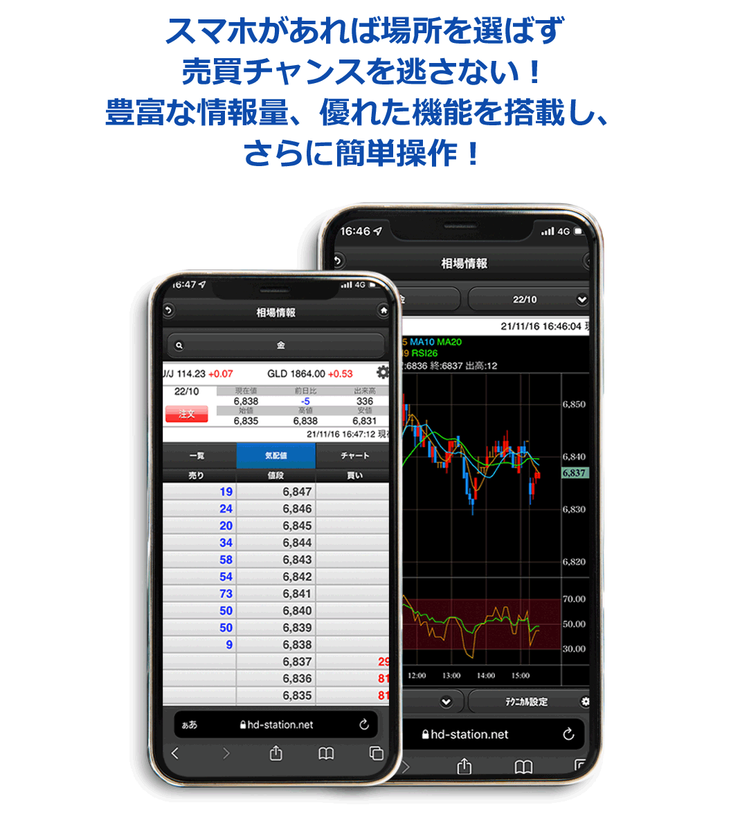 ご自宅ではPC、外出先ではタブレット、といったように様々なシーンでのトレードに対応可能で、いつでもどこでもお気軽にお取引いただけます。