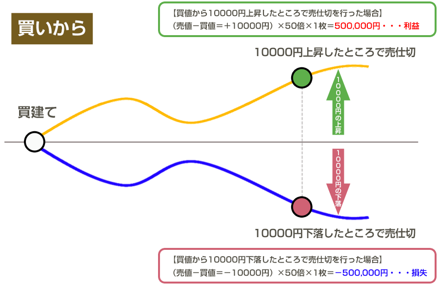 「将来原油価格が値上がりする」と予測する場合は「買建て」からスタートして期限内に売仕切して取引を終了。また、「将来原油価格が値下がりする」と予測する場合は「売建て」からスタートして期限内に買仕切して取引を終了と、原油先物取引では値上がりと値下がりのどちらの局面でも利益を狙うことが可能です。